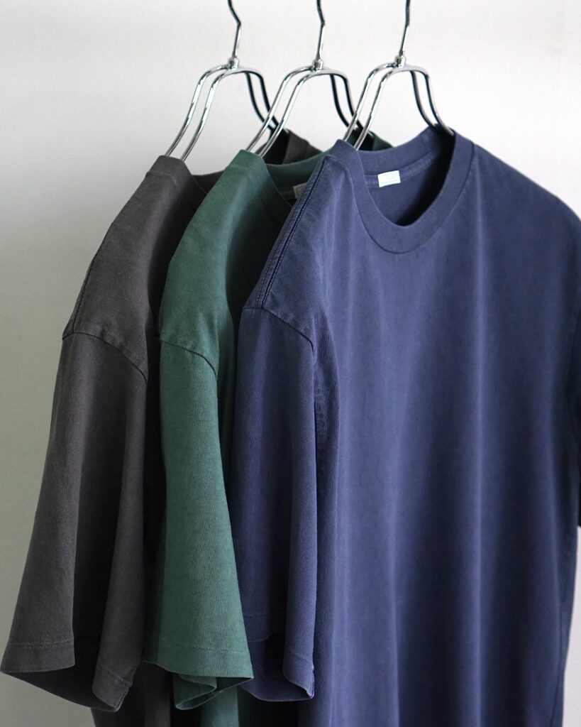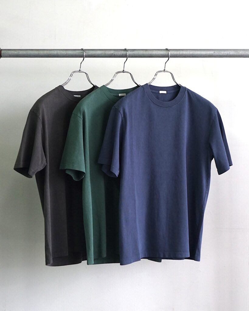 アメリカンアンダーウェアの良さを継承し、シャツの襟元の釦を開いた際に覗くクルーネックの開きも計算し、デニムやチノパンと合うシルエットに仕上げられた1枚。