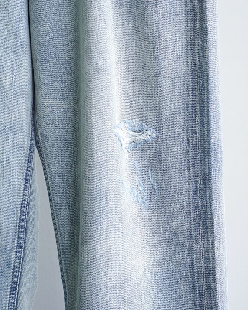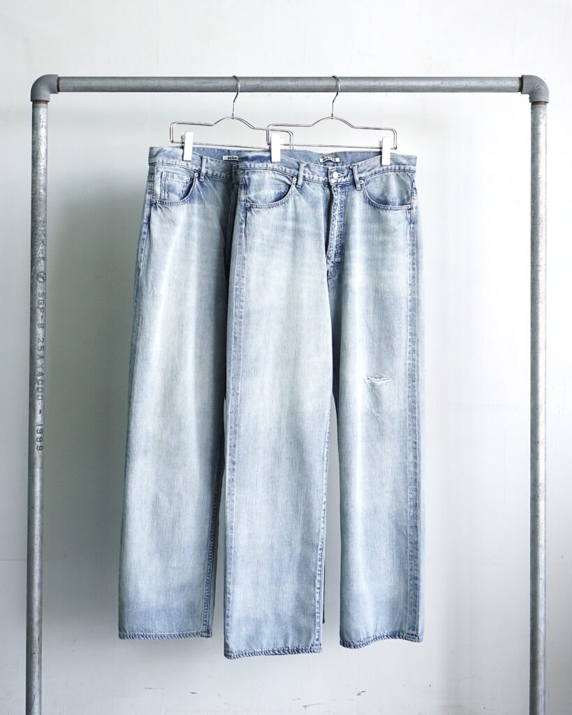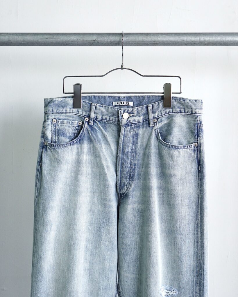 コレクションでも印象的だったオーラリー初のダメージ加工が施されたデニム。