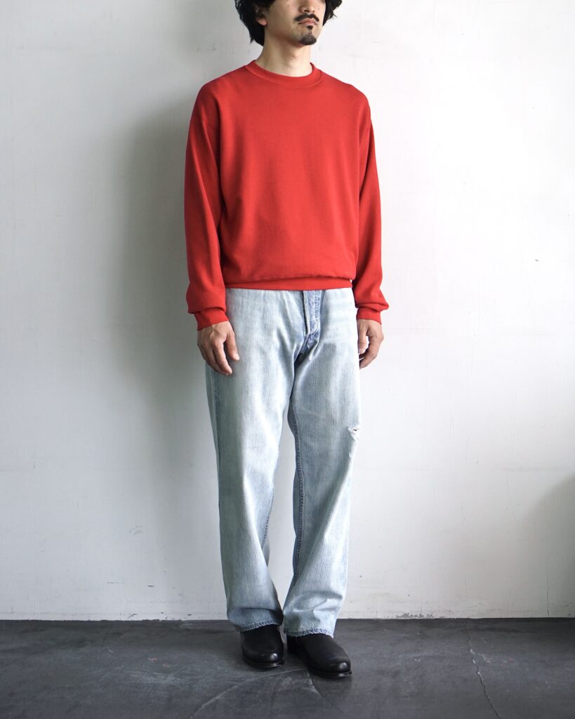 世界に1台しかない特殊な編み機を使⽤し、裏のループがフラットになるように編み上げることで、裏⽑とは思えない薄さとキックバック性に富んだソフトな⾵合いを実現しています。