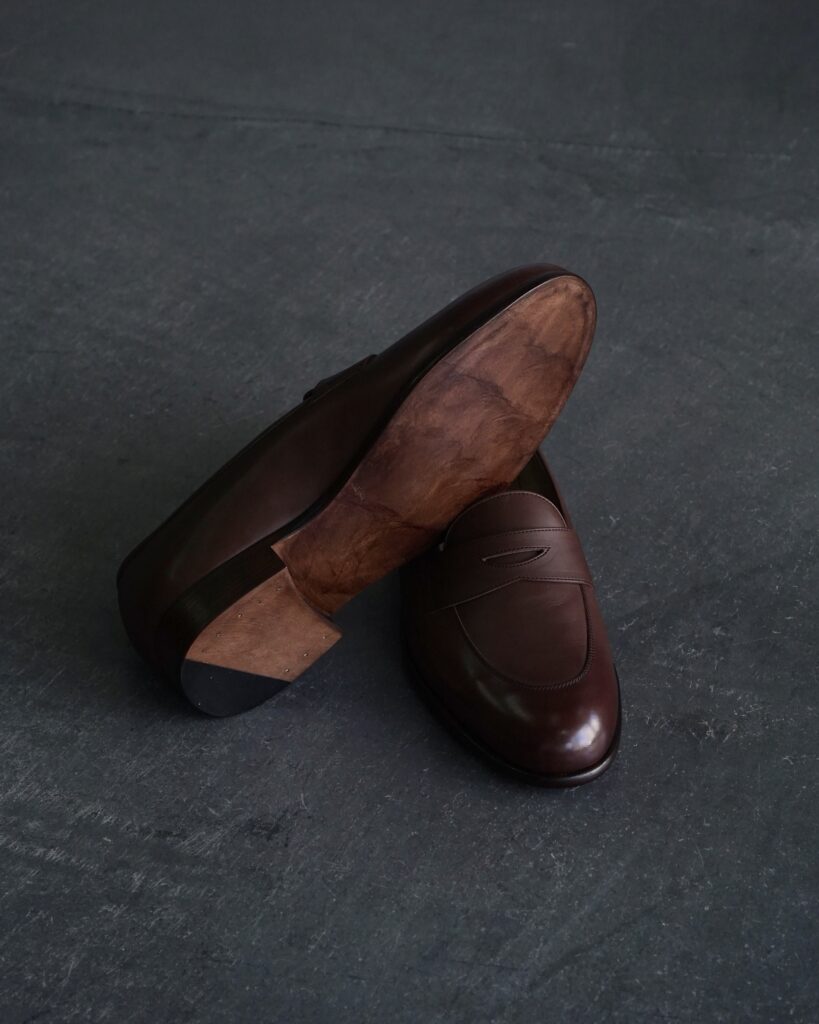 そしてやや広めにとった履き口や、シャープで丸みのあるトゥ、ウェルトの細やかな目付や控えめな丸いコバ。