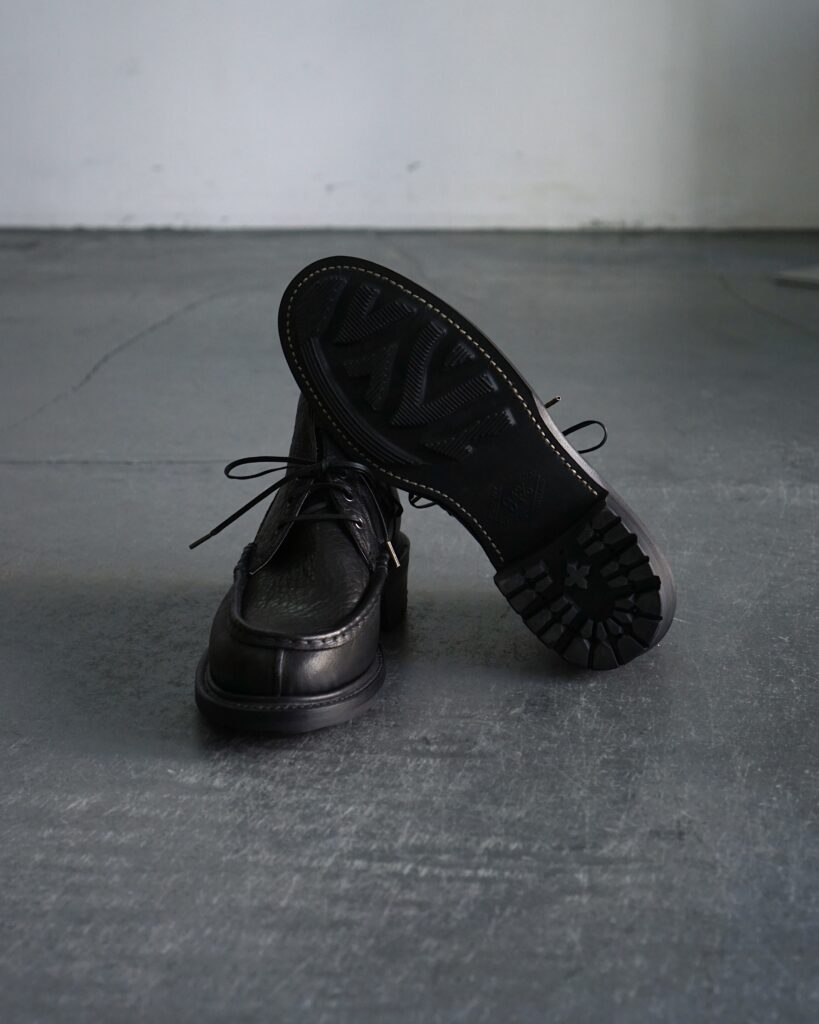 ヨーロッパから見たアメリカ靴的な雰囲気なのでデニムとの相性はもちろんの事、スラックスと相性がよくモードな着こなしにも取り入れられる絶妙な1足になってます。