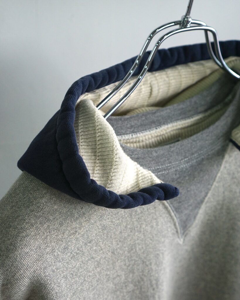 ヴィンテージの薄く伸びきって緩くなったリブや、ポケットやVガゼットの歪み、被れない小さなフードをあえて再現。