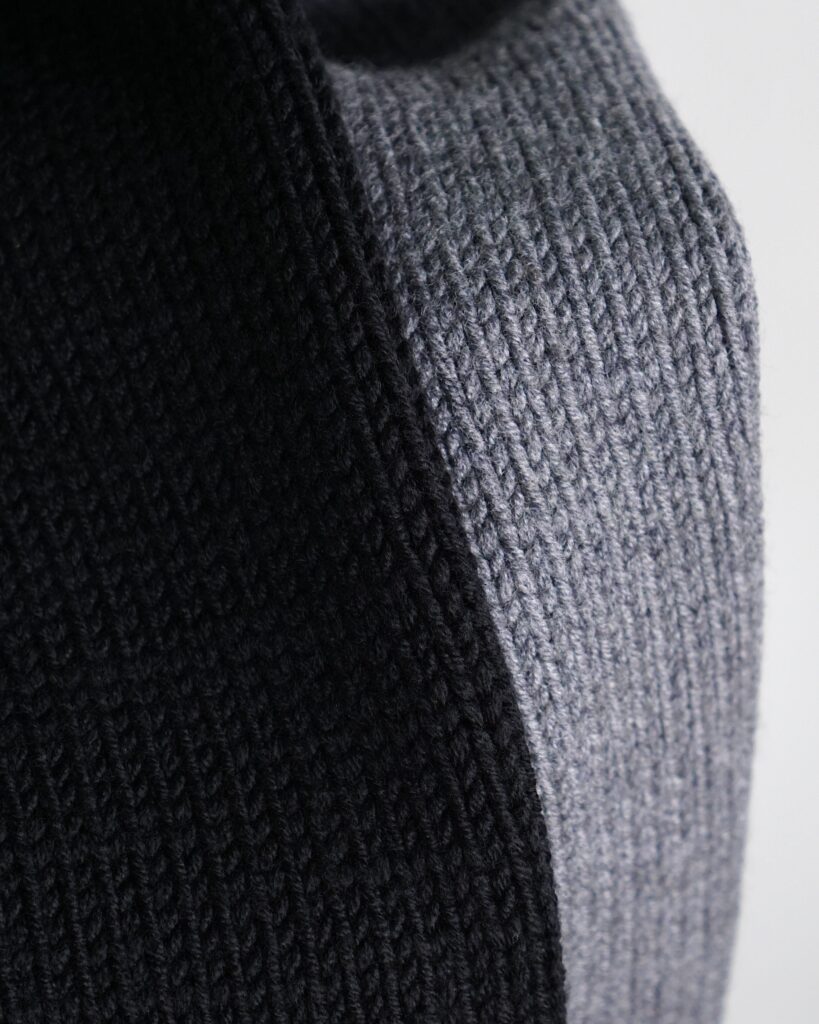 度目の詰まった重量のある編み地は上品な光沢と弾力があり肌触りがとてもよく保温性も抜群!