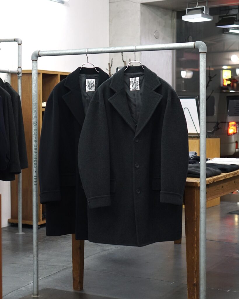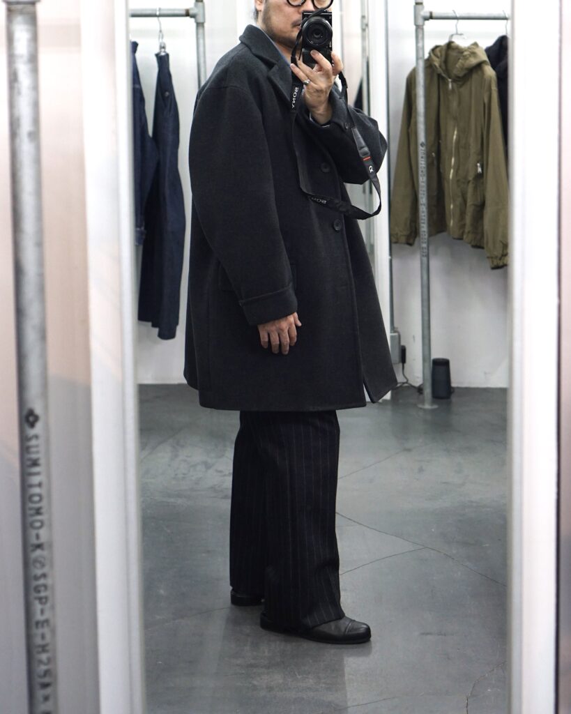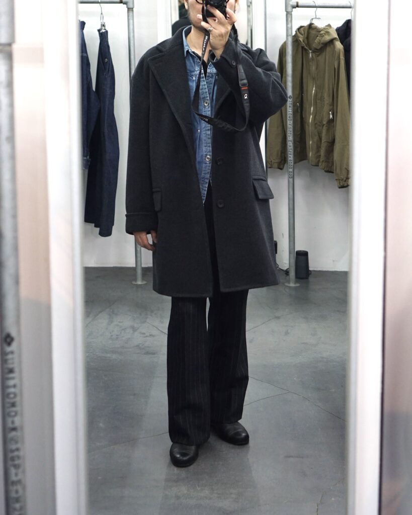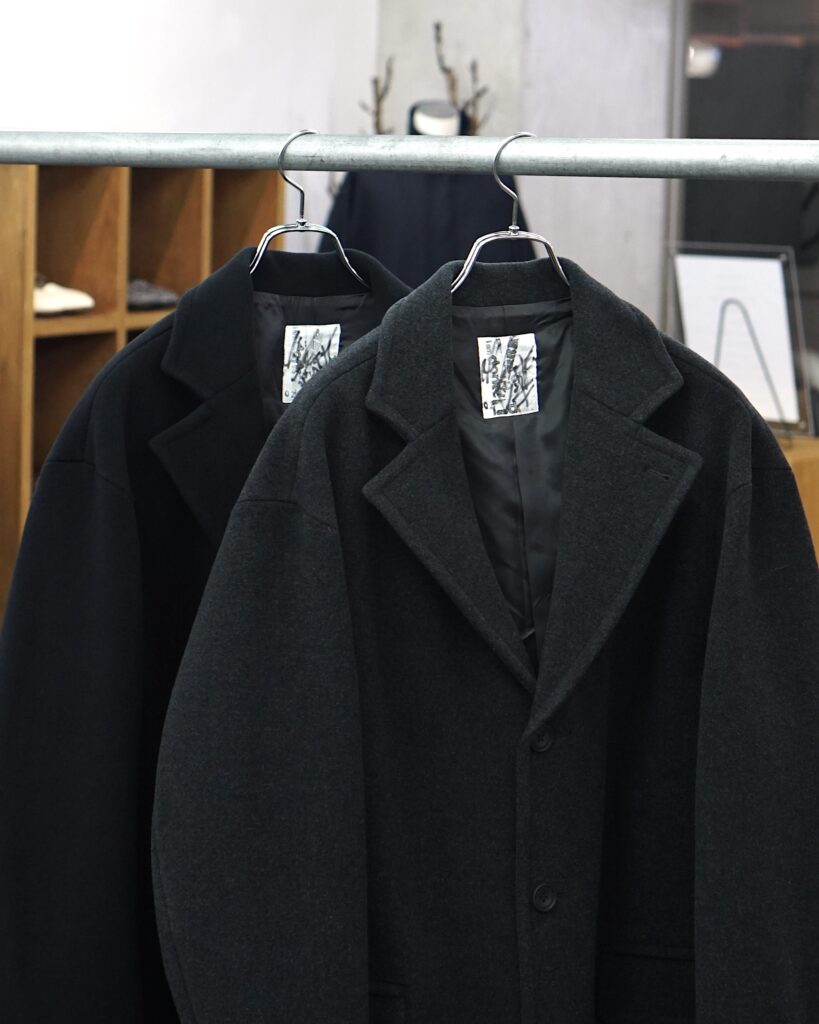 膝上丈でボックスシルエットのこなれた雰囲気のメルトンチェスターコート。