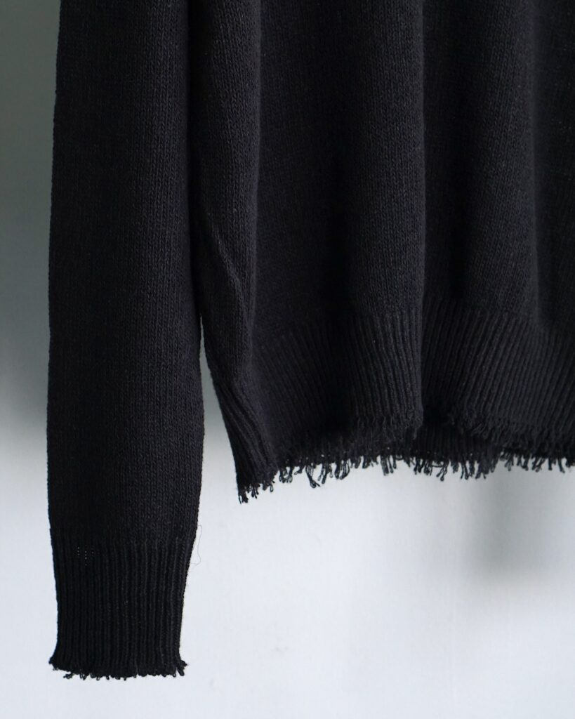 UネックのようなVゾーンにお得意の袖や裾のカットオフ調の編みも◎