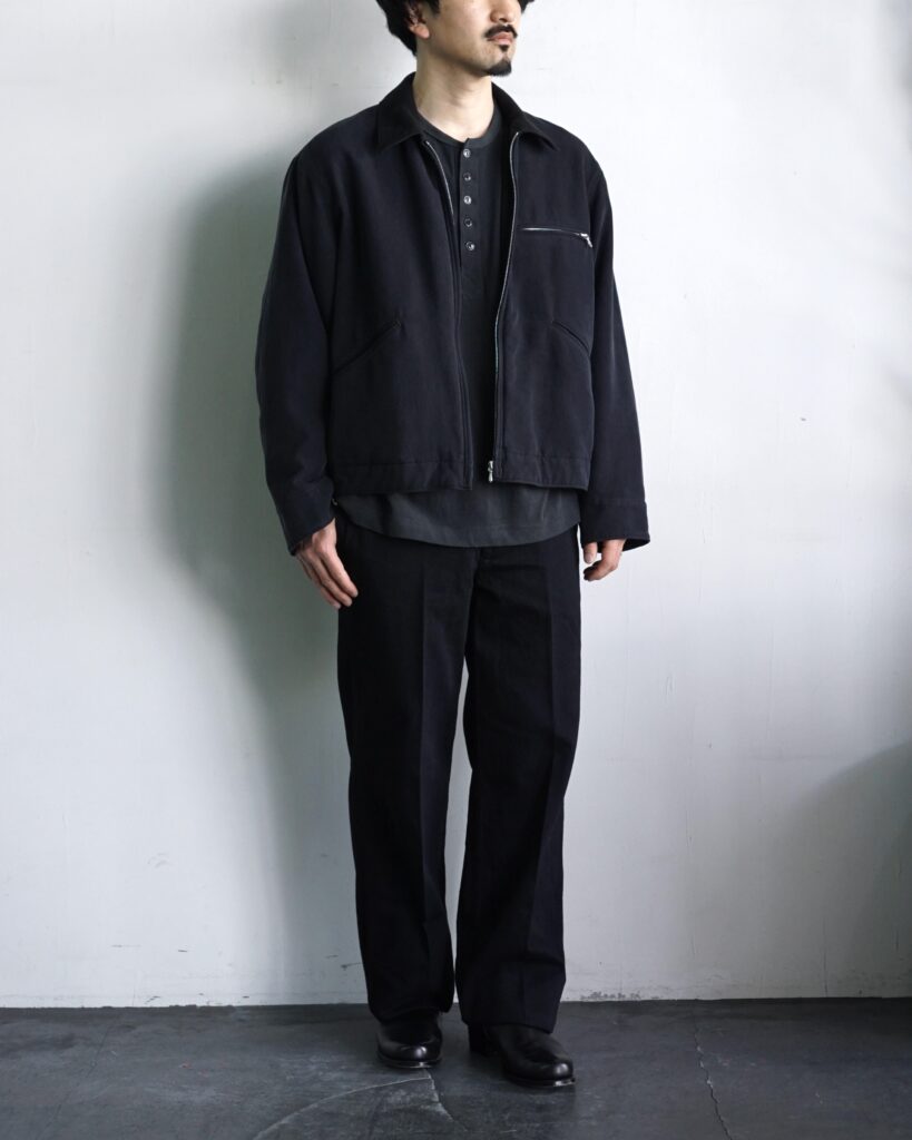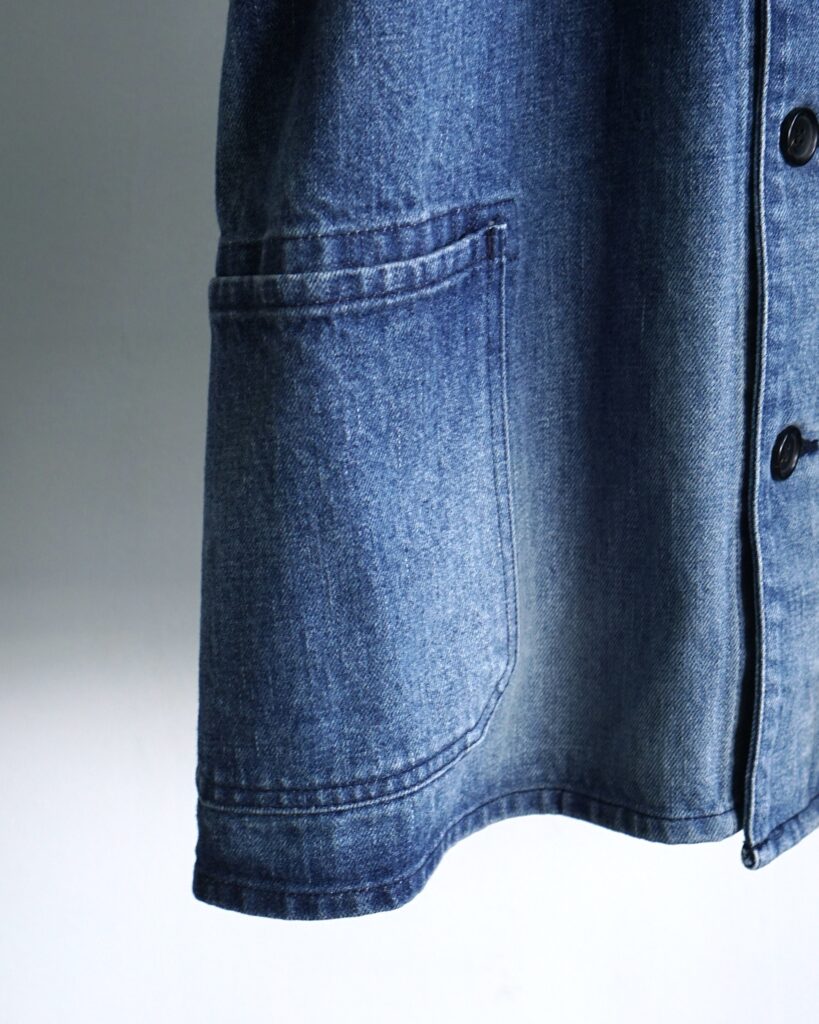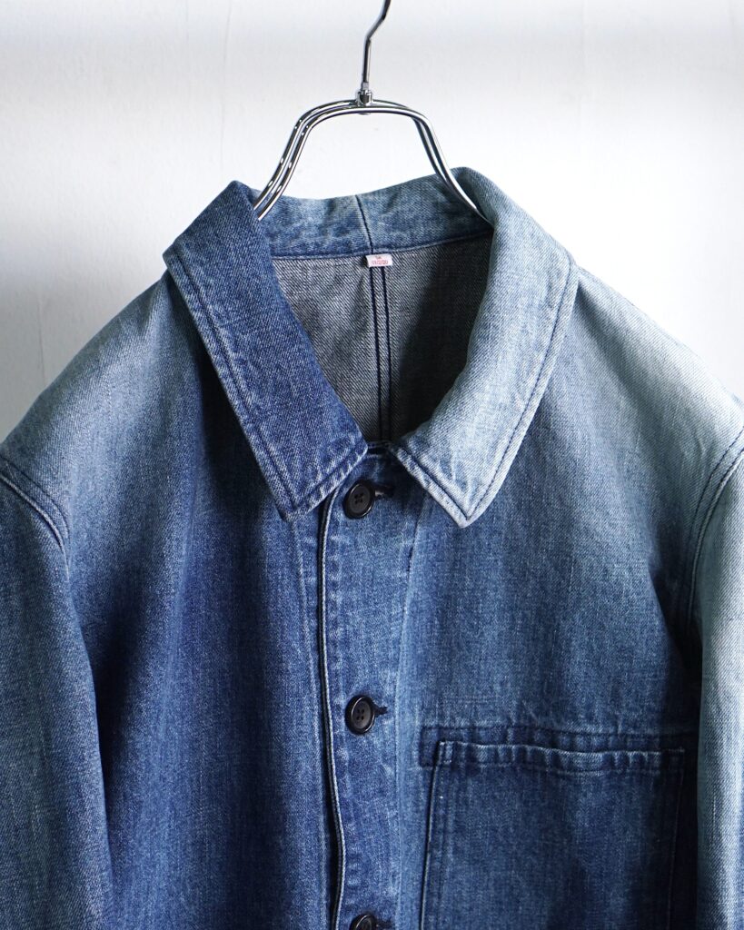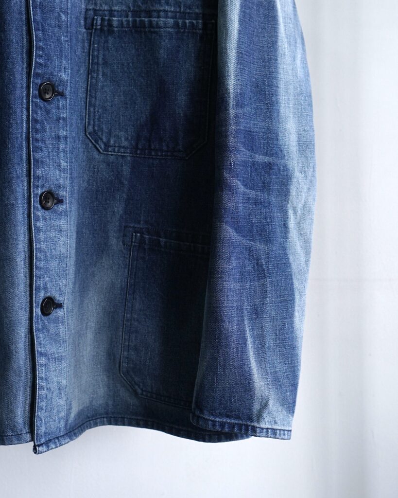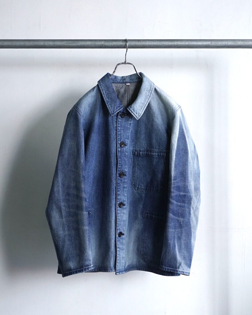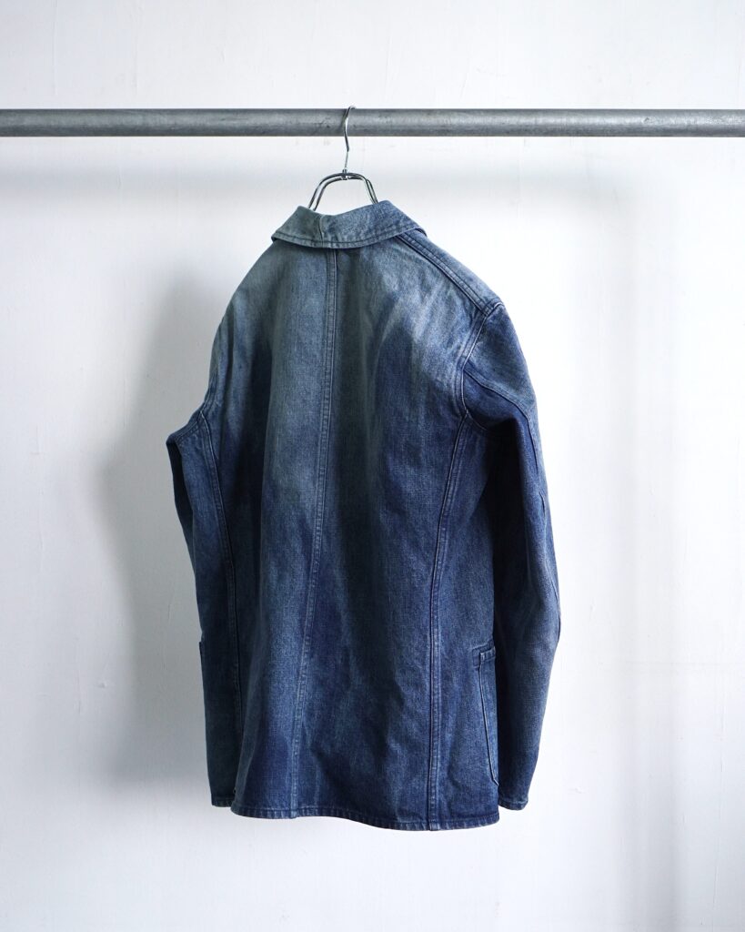 古着の色落ちしたワークジャケットを誇張とズレでデザインし直し、独自のものを目指して作りました。