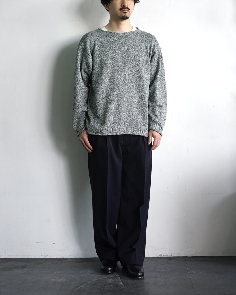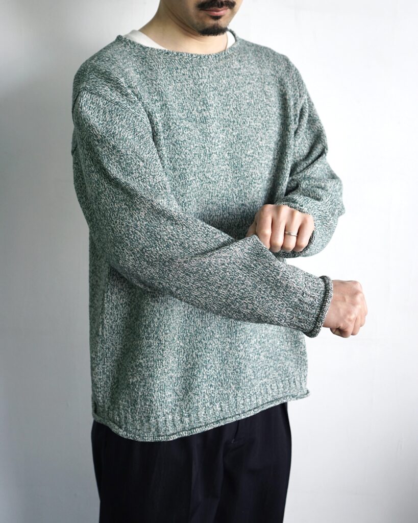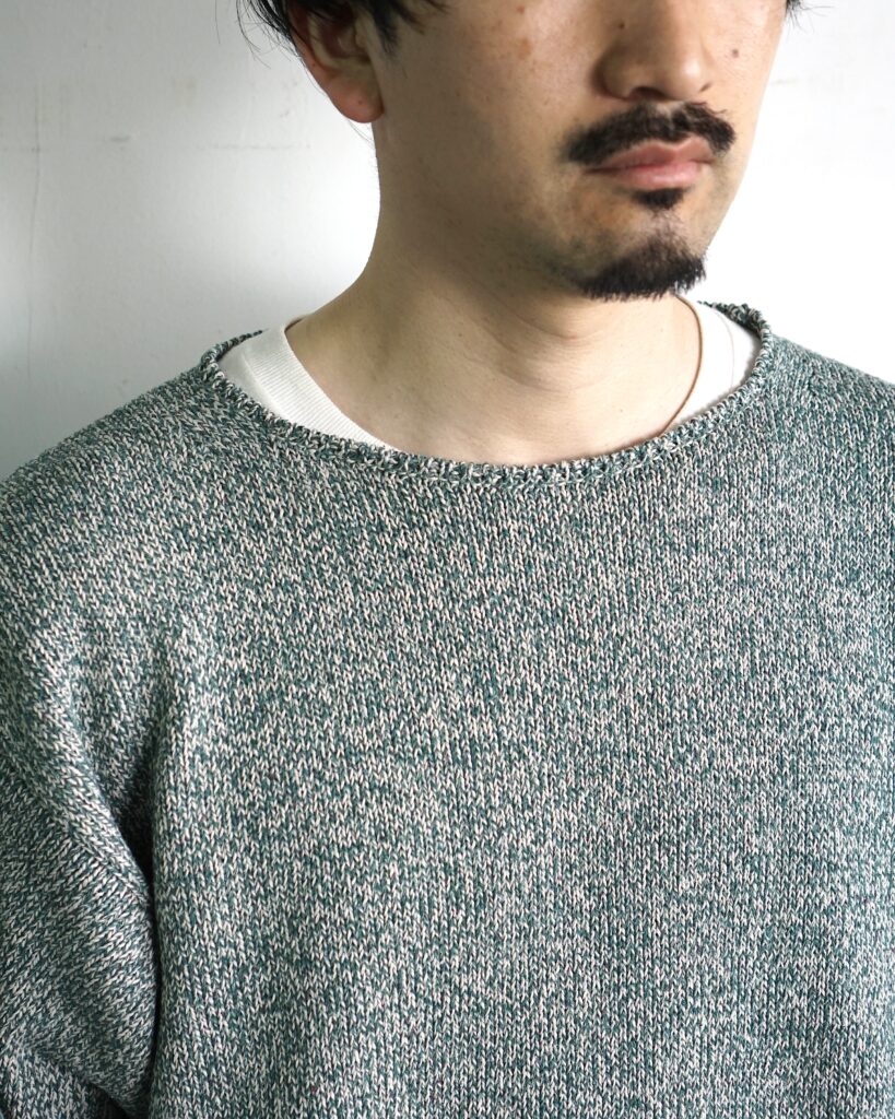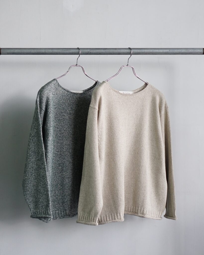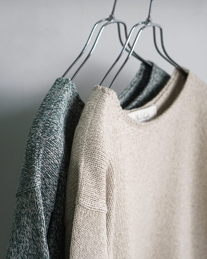シルクコットン素材ながらリネン素材のような質感に仕上げられたニット。