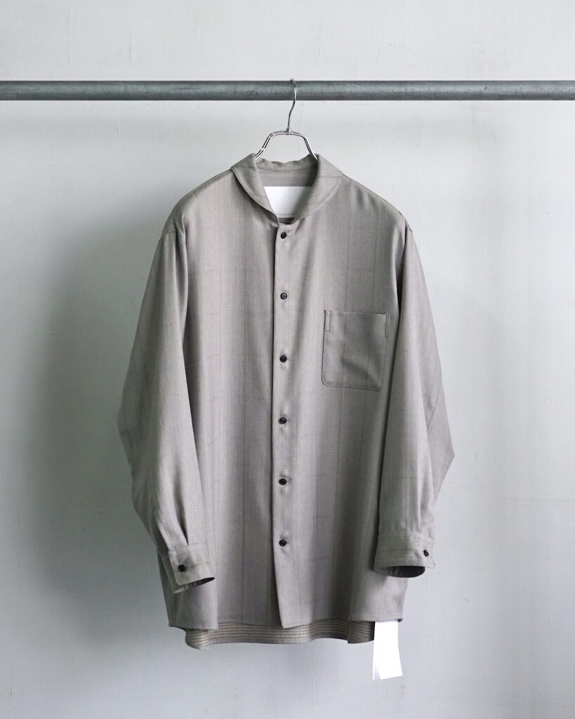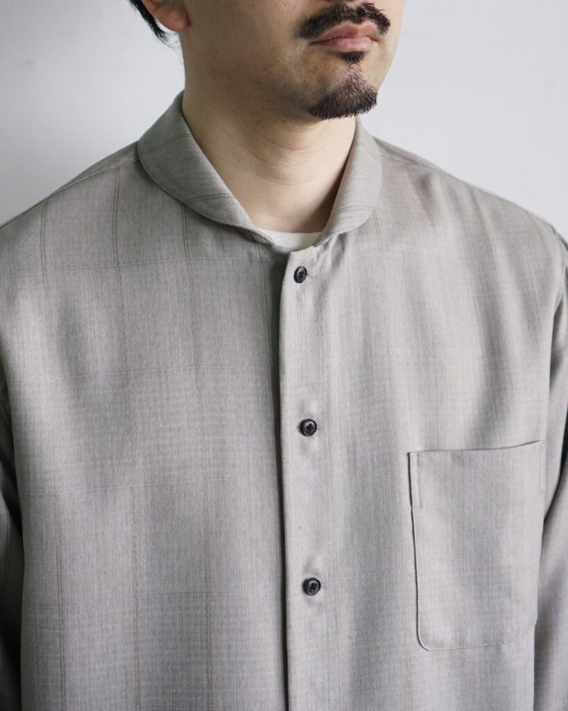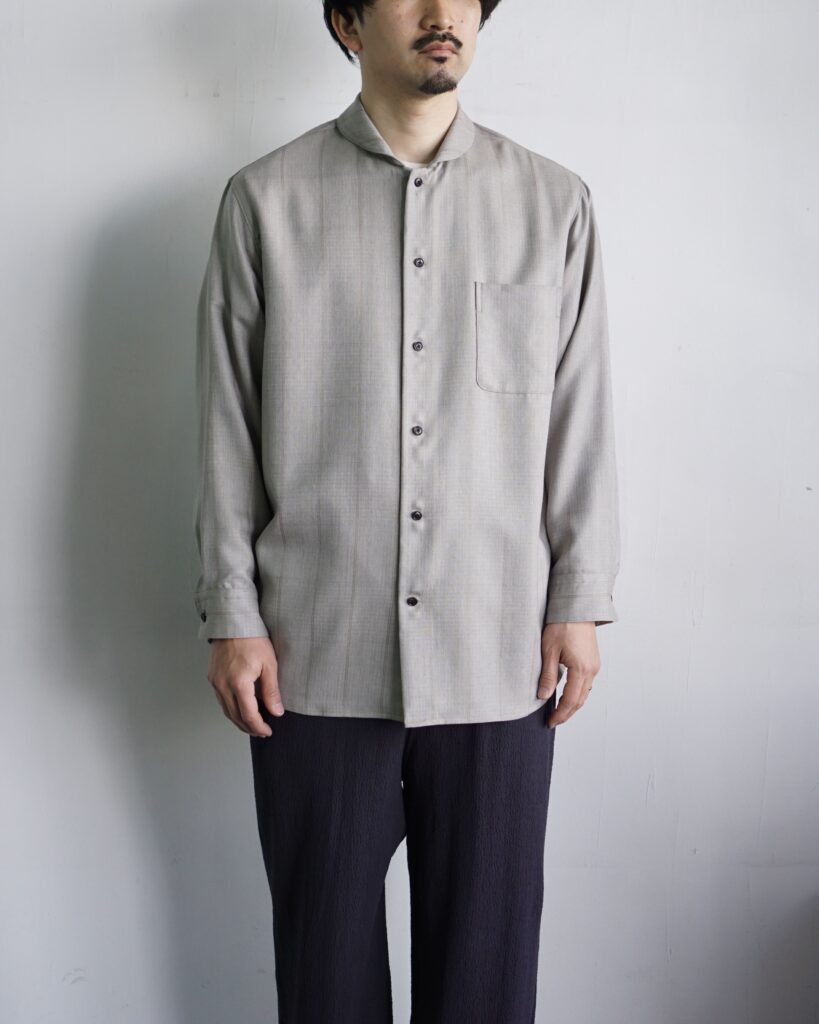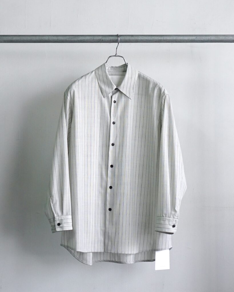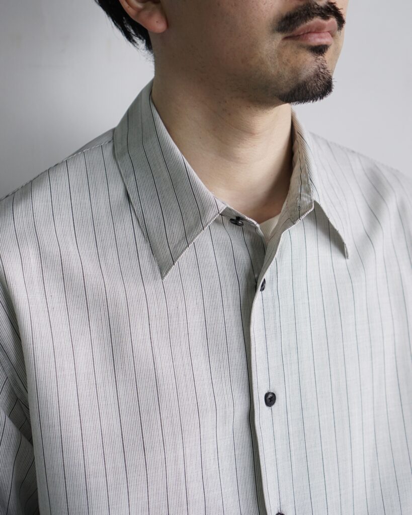 一見控えめな印象の中に、実験性と色気を秘めたシャツ。 ぜひ袖を通して、その陰影の美しさを体感していただければと思います。
