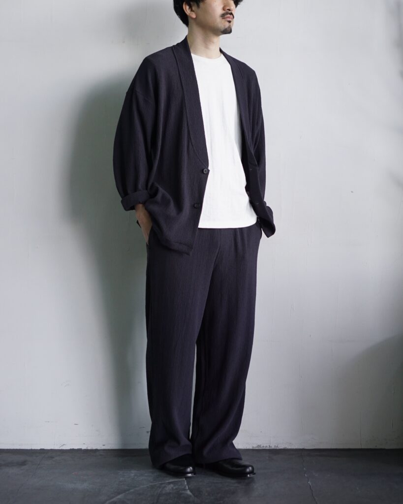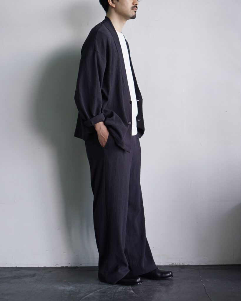 ジャージー素材のパンツにありがちな、ルームウェア感やカジュアルさは一切ありません。 素材の特性を活かし、暑い季節でも気持ちよく、堂々と穿ける。 そんなパンツに仕上がったと思います。