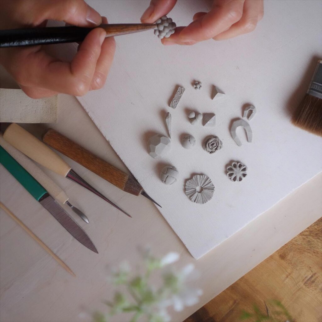 様々なモチーフの耳飾りを中心に作品が並びます。
