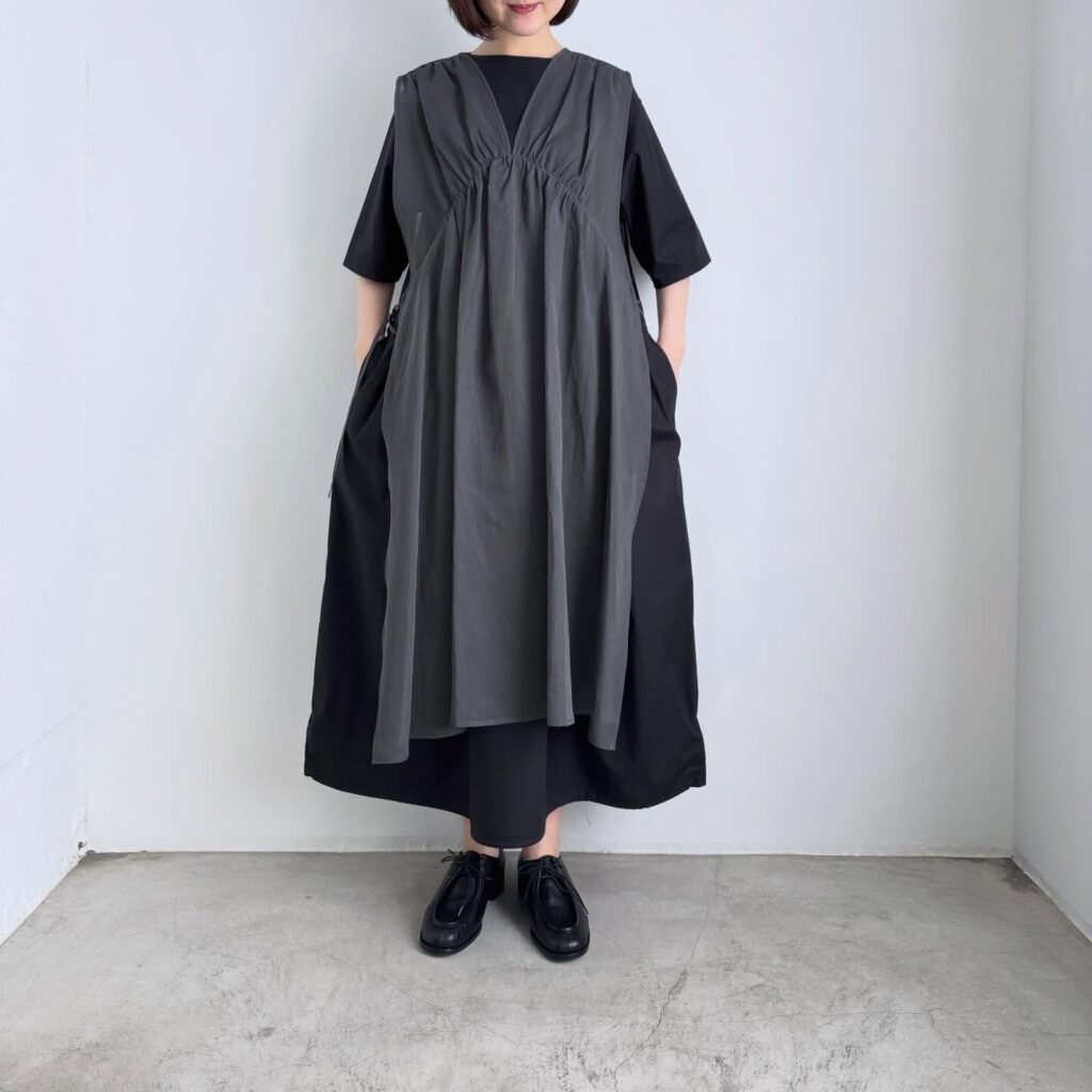 プレーンなドレスなのですが、切り替えラインや裾にアジャスターがついて