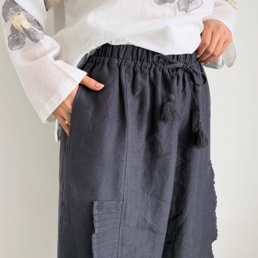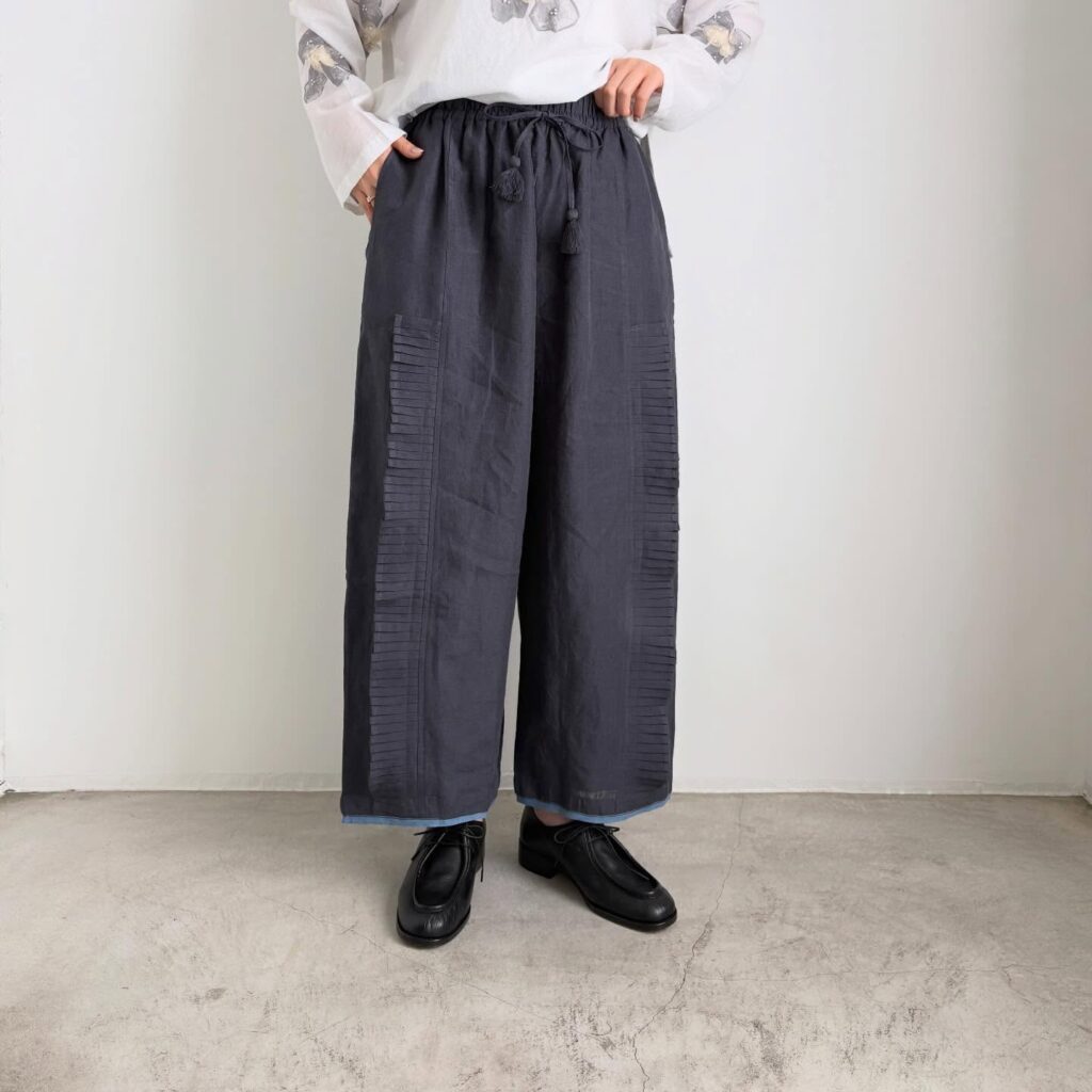 Ruffle tuck pantsと名前がついた縦にプリーツデザインが施されたパンツです♪