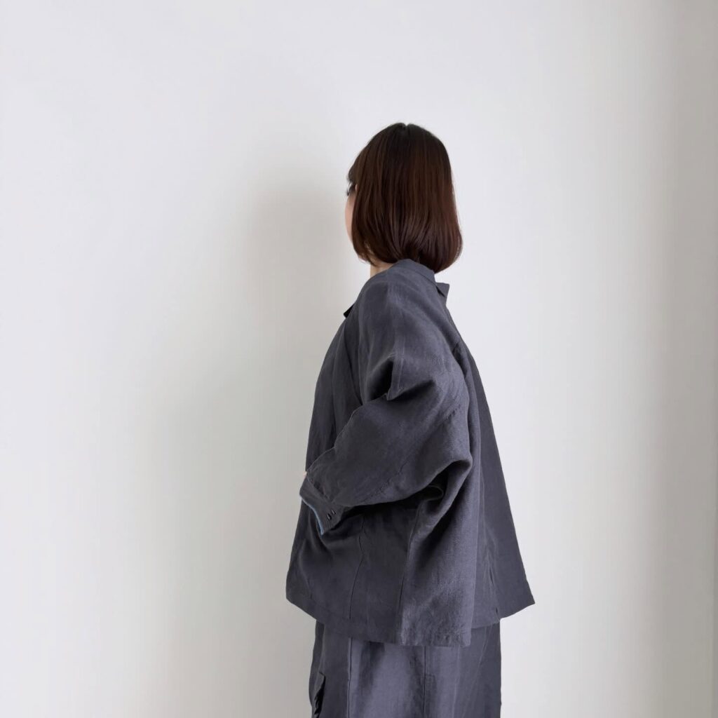 清涼感のある軽やかなリネン生地でジャケットは今の時期の羽織アイテムとしても重宝していただけます。