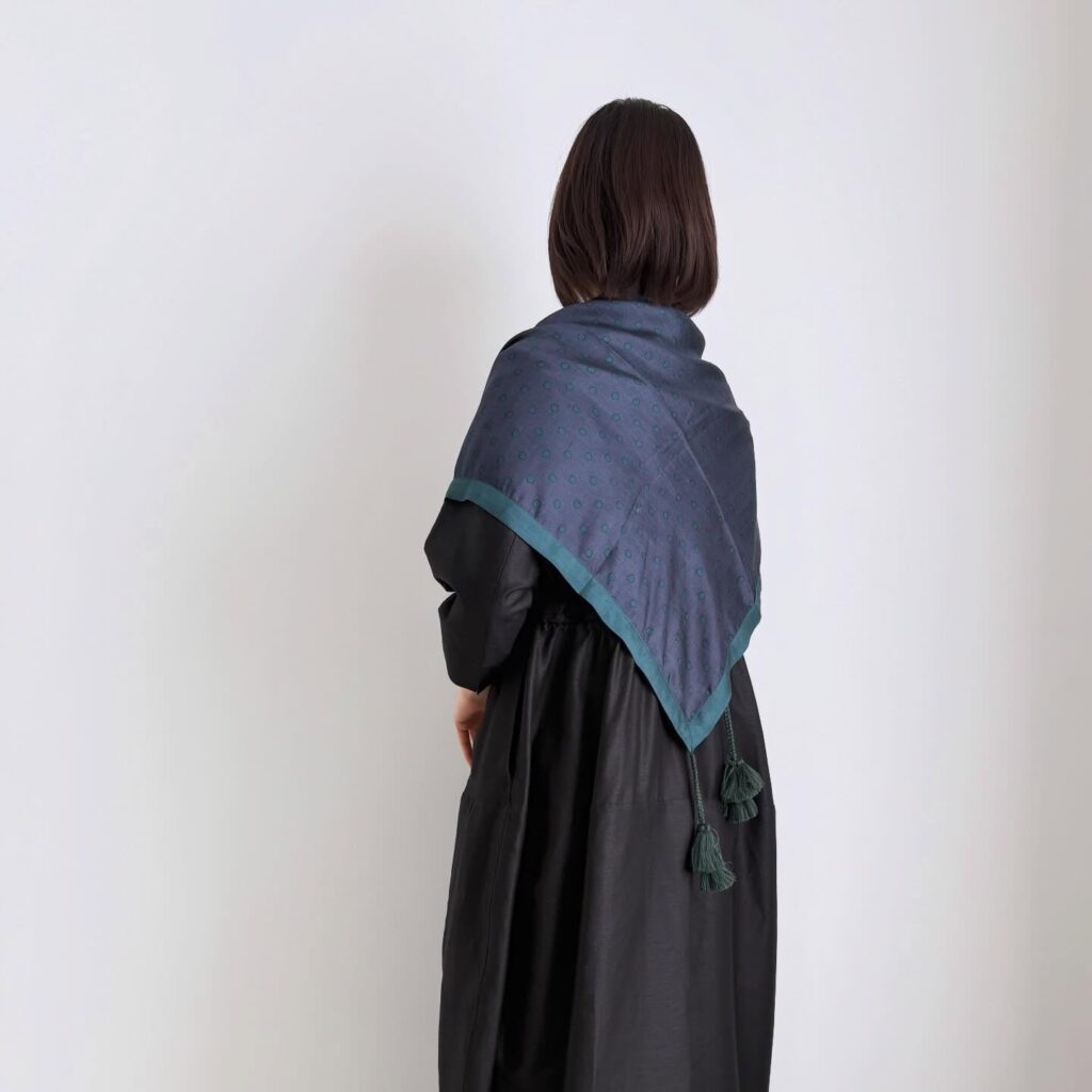 大判で四隅にタッセルがついているので、いい感じの重りになって妙にしっくりとおさまりが良いです♪