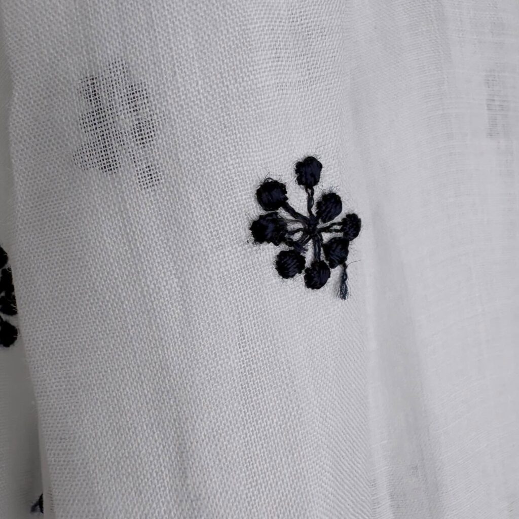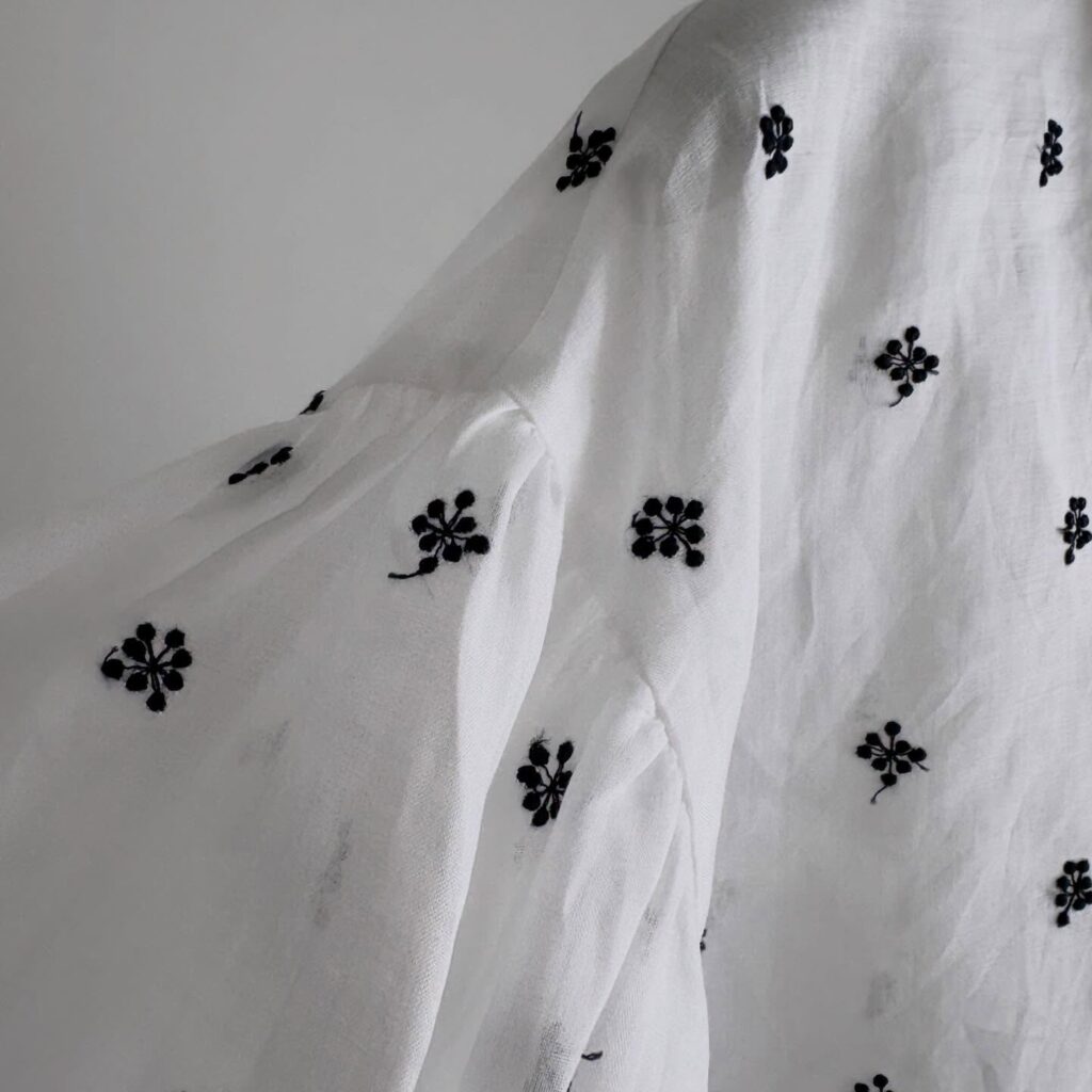 ぽんぽんと弾ける音のように羅列させた粒々の刺繍が可愛らしいです