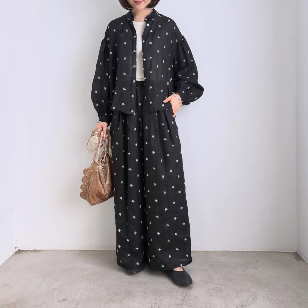 ワイドパンツのシルエットもとてもきれいです